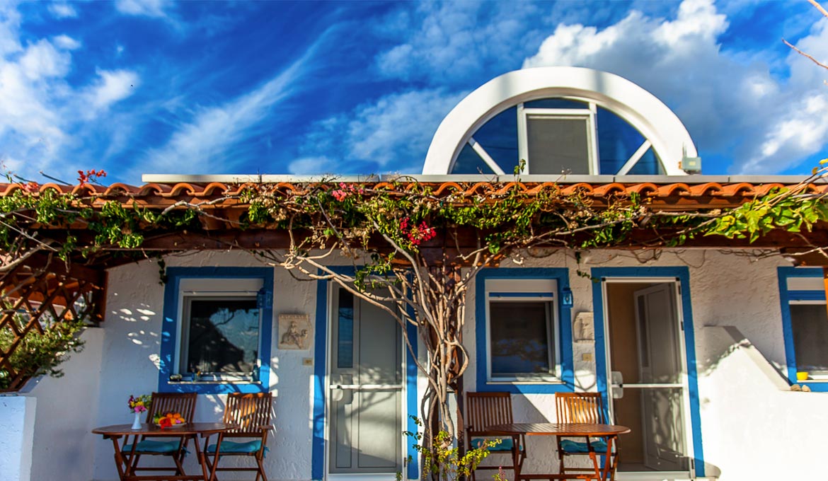 Dieses gemütliche und hell ausgestattete Eck-Apartment verfügt über ein Doppelbett (auf Wunsch umzuändern in zwei Einzelbetten), eine optimal ausgestattete Küche mit diversen Extras, Badezimmer mit WC/Dusche, Essbereich, C/D Stereo, Bücher und über ZWEI Sitzplätze/Veranden mit Gartenmöbeln und Relaxliegen, südwärts Richtung Meer und süd-westwärts Richtung Berge und Abendsonne. Bei Bedarf kann diese Wohneinheit durch eine interne Türe mit nebenstehendem DEMETER verbunden und dadurch als Teil eines 2.5-Zimmer Appartements bewohnt werden.